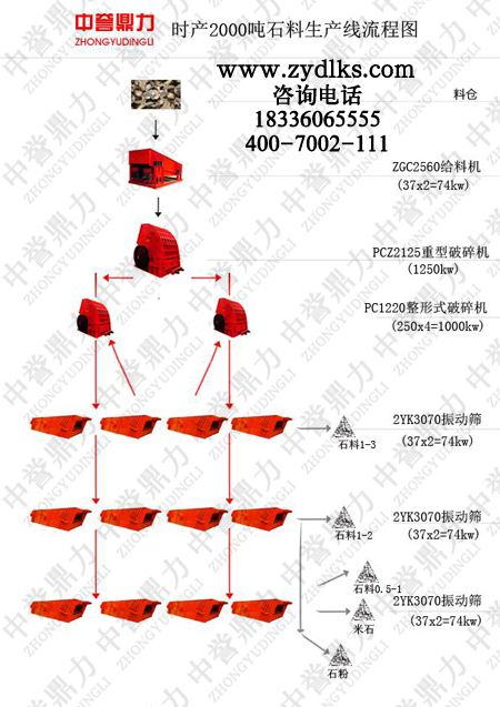 先振動給料機將從山上開采下來的大塊的石頭均勻的送至重型錘式破碎機入料口,重型錘式破碎機可以將物料一次性破碎成型,被破碎后的物料經(jīng)振動篩篩分后,符合成品粒度的被輸送至各個成品料堆,不符合的物料被重新送回重型錘式破碎機進行再次破碎。如果是時需要達到1000噸以上或產(chǎn)量比較大的采石生產(chǎn)線,我們可以在重型錘式破碎機的下段再加上相應的二破整形錘式破碎機來增加時產(chǎn)。