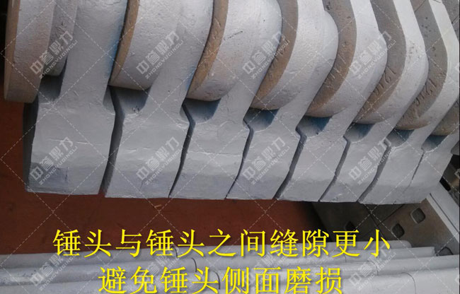 1、配件使用壽命長(zhǎng)——主襯板厚度增加,延長(zhǎng)使用壽命;錘頭與錘頭之間縫隙更小,避免錘頭側(cè)面磨損;錘盤(pán)上安裝護(hù)套;