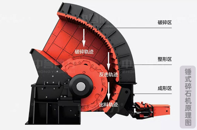 錘式碎石機(jī)進(jìn)入破碎腔后需要經(jīng)過(guò)三個(gè)區(qū)域,分別是破碎區(qū)、整形區(qū)、成型區(qū)。 大家應(yīng)該都知道錘式碎石機(jī)具備一破成型的優(yōu)勢(shì)。那么所謂的破碎區(qū)就相當(dāng)于對(duì)物料進(jìn)行粗破處理,整形區(qū)就是對(duì)物料進(jìn)行中細(xì)碎處理,然后就是成型區(qū),成品料生產(chǎn)完成。
