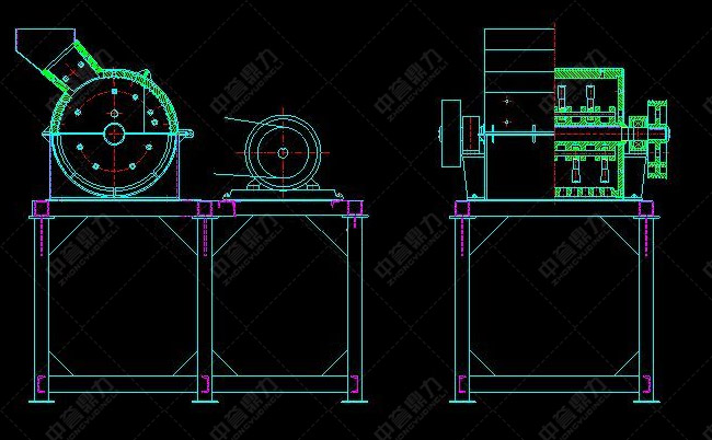 下圖為1000錘破地基圖紙,1000錘破轉(zhuǎn)子直徑和長度均為1米,設(shè)備結(jié)構(gòu)簡單,每小時生產(chǎn)100多噸,出料粒形均勻,在35毫米以下,粒度可調(diào),過粉量低。
