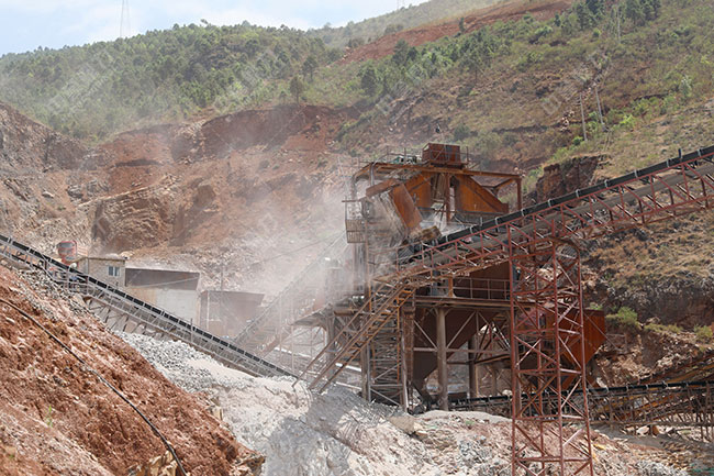 篩分單元:在毛石含泥量較大時,應(yīng)調(diào)大棒條給料機棒條間距,提高篩分效率,進入鄂破的毛料含泥量達標。棒條給料機篩下物料經(jīng)土篩篩選回收可使用細毛石。