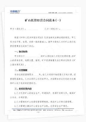 根據(jù)《中華人民共和國合同法》及其他相關(guān)法律法規(guī)的規(guī)定,甲乙雙方在平等、自愿、協(xié)商一致的基礎(chǔ)上,就甲方委托乙方對礦山進行托管經(jīng)營事宜達成如下協(xié)議: