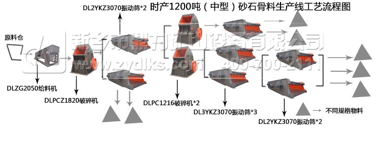 物料由原料倉進入振動給料機物料受力均勻,勻速進入破碎機內腔進行破碎作用,破碎物料經(jīng)過兩臺振動篩進行篩分,出一部分成品料,一部分破碎后物料再進入二級破碎機進行再次破碎加工,獲得符合物料顆粒粒度的成品料。