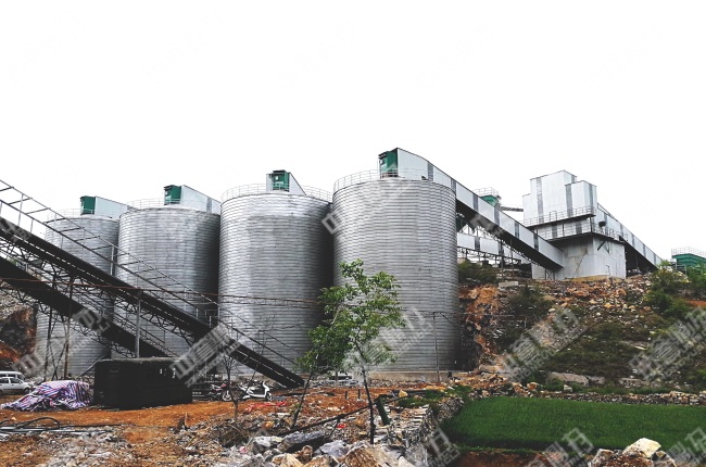 生產(chǎn)線引入中譽鼎力PCZ1615重型錘式反擊式破碎機、PC1216整形式破碎機等設備,時產(chǎn)量600噸;各個環(huán)節(jié)均采取封閉措施,杜粉塵外溢。例如在儲料環(huán)節(jié)引入封閉的儲料罐,便于分類儲存銷售。針對生產(chǎn)線中產(chǎn)生的石粉,加裝除塵器進行集中收塵,后續(xù)集中利用,再次銷售。