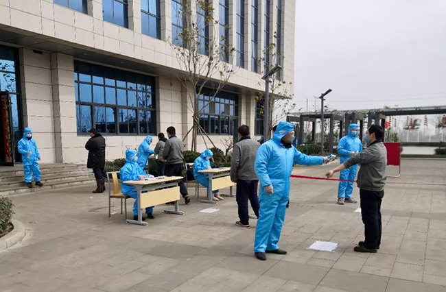 王生群一行來到中譽(yù)鼎力廠區(qū)內(nèi)部,詳細(xì)了解了公司的值班記錄、體溫測量、人員登記、食堂就餐等情況,認(rèn)真檢查疫情防控各項(xiàng)措施是否落地、落細(xì)、落實(shí)。