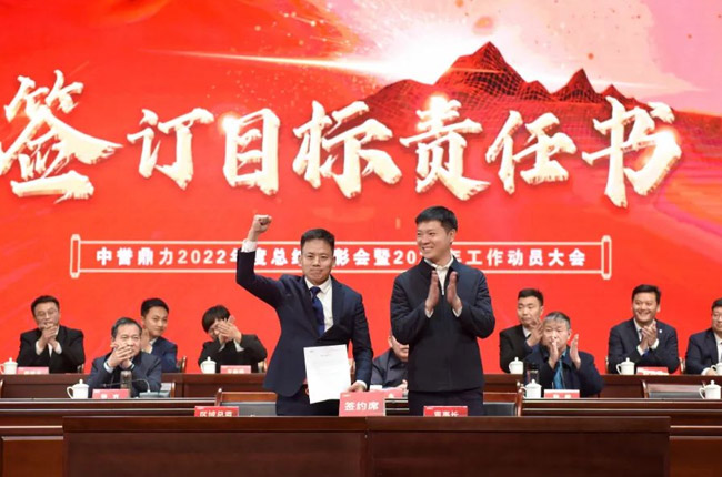新的任命書下發(fā)以后,中譽(yù)鼎力各區(qū)域銷售負(fù)責(zé)人與張治民董事長(zhǎng)一起簽訂銷售目標(biāo)責(zé)任書,為2023年銷售服務(wù)工作的開(kāi)展表決心、振士氣、強(qiáng)信心。