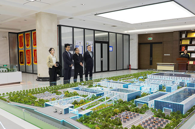 4月24日上午,調研代表團一行參觀了中譽鼎力多位一體循環(huán)建材產業(yè)園項目實踐基地——衛(wèi)輝市遠大環(huán)保材料有限公司四位一體大型建材項目,對該項目的環(huán)保生產工藝、智能管理方式等建材生產管理模式進行了詳細的了解。