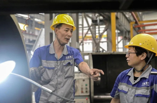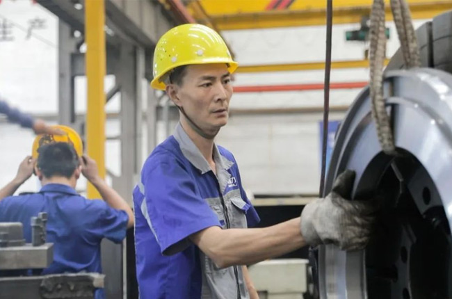 調(diào)質(zhì)熱處理過的鋼鑄件切割后,在他手上經(jīng)過粗車細削等多道工序,順利通過嚴格自檢和質(zhì)檢后,才能流轉(zhuǎn)至裝配環(huán)節(jié),多維度保障了機加工組件的耐磨性,使公司產(chǎn)品運行穩(wěn)定。