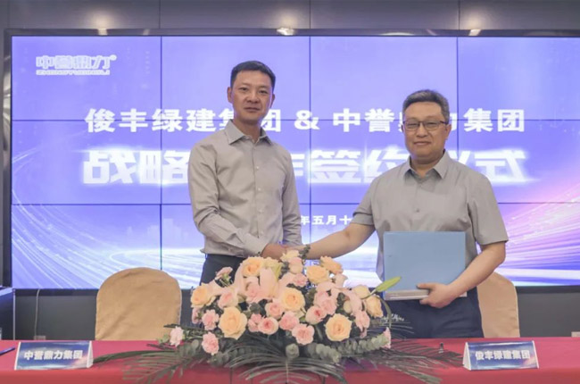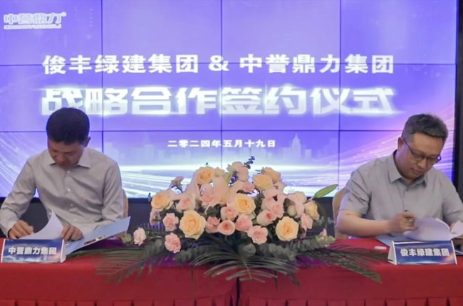 簽約儀式上,荊門(mén)俊豐綠建集團(tuán)黨委書(shū)記、董事長(zhǎng)胡錕與中譽(yù)鼎力集團(tuán)董事長(zhǎng)張治民代表雙方正式簽訂《戰(zhàn)略合作協(xié)議》。