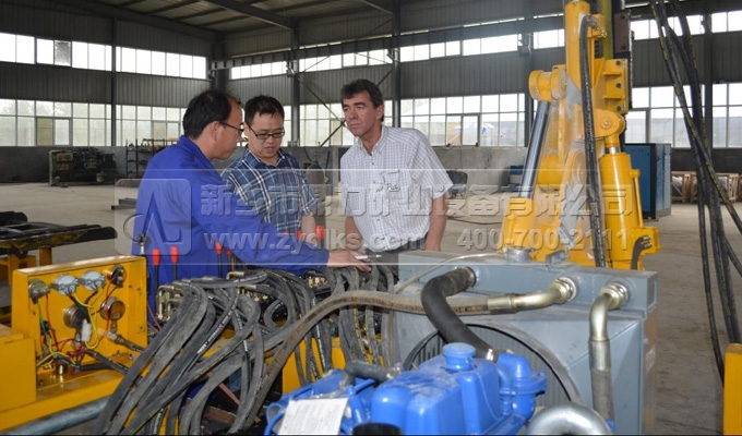 Colin 和 Craigo要為其公司選購能同時(shí)左右平移及左右偏移角度的鉆機(jī)設(shè)備,其之前已準(zhǔn)備購買德的某種鉆機(jī),但終因其高額的價(jià)格而退避三舍,為此他們來到中尋找類似德鉆機(jī)的廠家。在參觀廠房及鉆機(jī)廠并親眼看到鉆機(jī)運(yùn)行后,客戶表現(xiàn)出了大的好奇和興趣,并與工程師交流了一些技術(shù)問題和要求。得到滿意的回答后進(jìn)而與外貿(mào)經(jīng)理溝通具體的合作事宜。