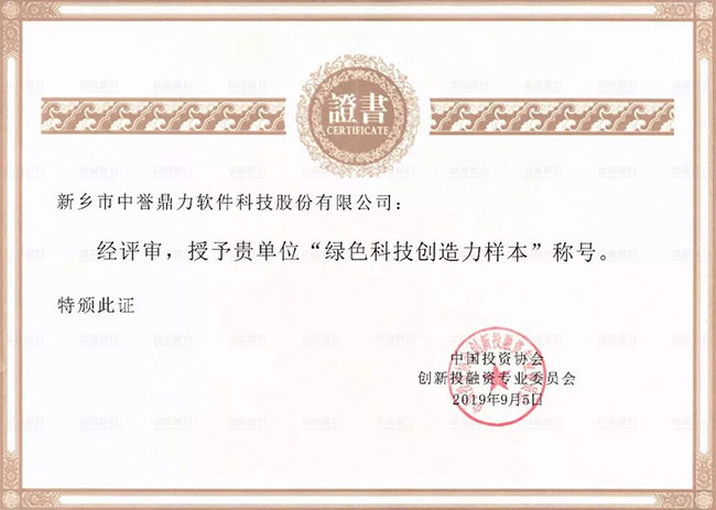 通過綠色礦山推進會、評審委員會初審和復審、系統(tǒng)評價等多個環(huán)節(jié),新鄉(xiāng)市中譽鼎力軟件科技股份有限公司成功入選中綠色科技創(chuàng)造力樣本。
