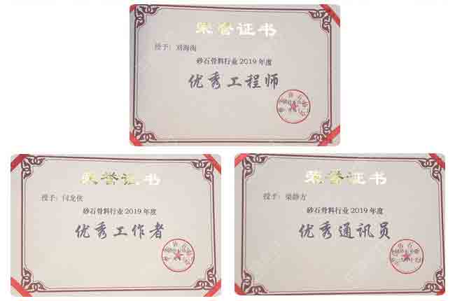 河南中譽鼎力智能裝備有限公司獲評“綜合服務(wù)商”“企業(yè)”榮譽稱號,公司董事長張治民被評為中砂石骨料行業(yè)“企業(yè)家”。中譽鼎力技術(shù)部長劉海淘、工藝設(shè)計師閆龍俠、企劃部部長梁靜方分別榮獲“工程師”、“工作者”、“通訊員”榮譽稱號。