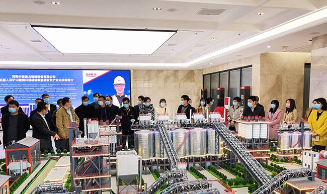 河南中譽(yù)鼎力智能裝備有限公司常務(wù)副總經(jīng)理張志宇、副總經(jīng)理崔玉清及新鄉(xiāng)市中譽(yù)鼎力軟件科技股份有限公司總經(jīng)理?xiàng)钋探哟,并介紹中譽(yù)鼎力各項(xiàng)情況。