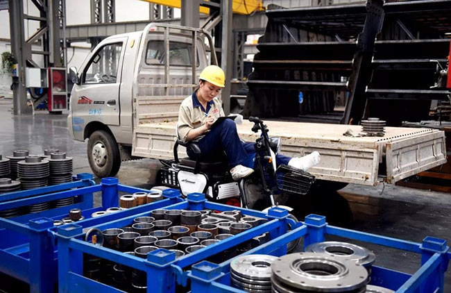 7月22日上午10點(diǎn),中譽(yù)鼎力智能裝備生產(chǎn)車(chē)間機(jī)加工區(qū)新到了一批外協(xié)件,張衛(wèi)霞坐在電動(dòng)三輪車(chē)上依次仔細(xì)地檢查著每一個(gè)零部件:觀察、測(cè)量、記錄、填單……嚴(yán)謹(jǐn)?shù)馁|(zhì)檢流程沒(méi)有因?yàn)槟_受傷而有所耽誤。