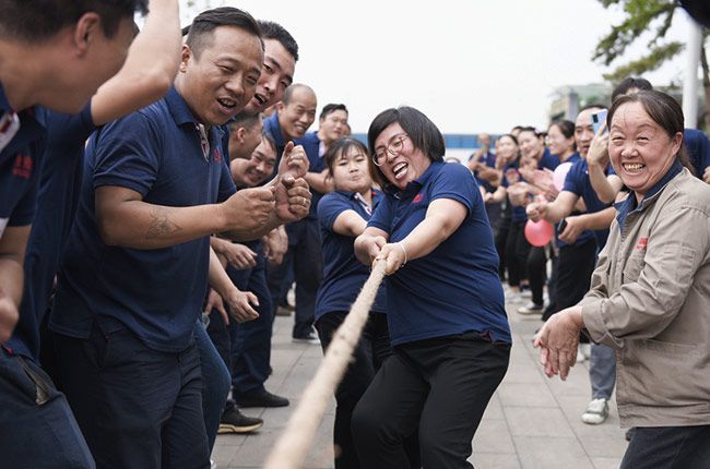 而在團(tuán)體賽環(huán)節(jié),一圈到底的默契傳遞、蜈蚣競走的嚴(yán)謹(jǐn)配合以及拔河大對抗的群體力量博弈……無一不彰顯出鼎力人團(tuán)結(jié)協(xié)作、敢于爭先的奮斗精。