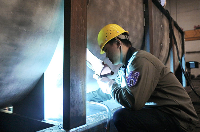 嚴格按照制造工藝出具的指導書完成組對任務后,他和班組成員堅持先自檢、再質檢,組對工件的順直度、光滑度、內徑尺寸及外觀等悉數達標,檢出無次品、產品不變形,令公司設備品質實現了大幅度提升。