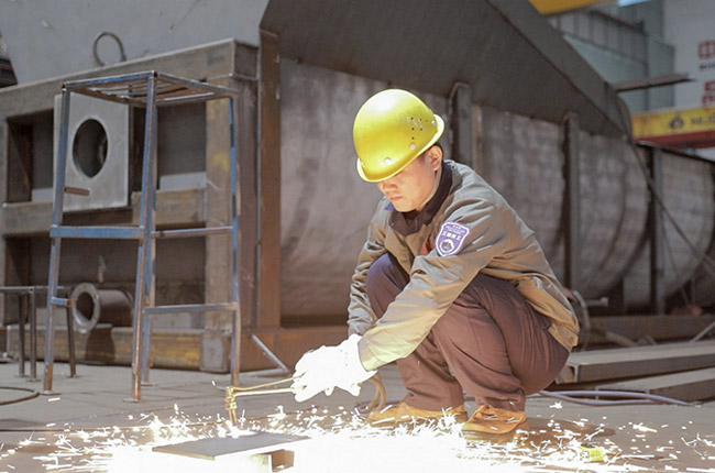 2017年,范明明作為組對班組新人,憑借扎實的技術實力、踏實的工作作風被推舉為新成立組對班組的班組長。識圖紙、練切割,夜以繼日,不斷精進鉆床、鉚焊技術,虛心請教前輩管理經驗,他不負重托,用努力付出和辛勤汗水贏得了大家的認可和導的。