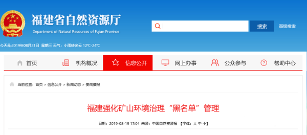 福建自然資源廳:加強(qiáng)礦山環(huán)境恢復(fù)治理“黑名單”管理