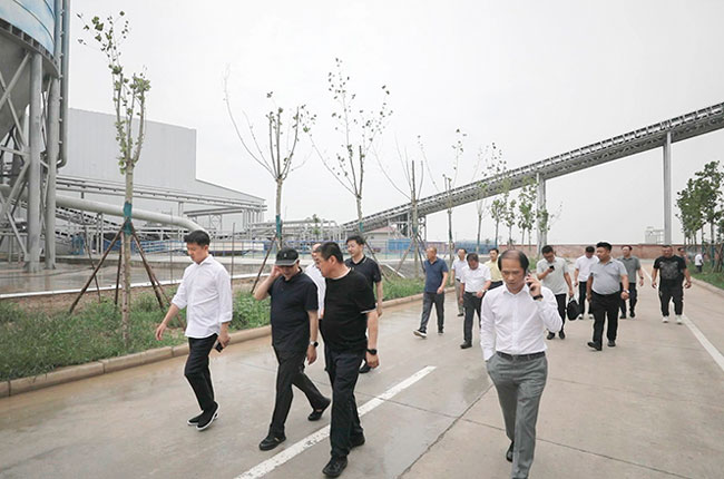 考察遠(yuǎn)大新材項(xiàng)目生產(chǎn)線及成品料倉(cāng)