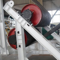 皮帶輸送機(jī)是一種摩擦驅(qū)動(dòng)以連續(xù)方式運(yùn)輸物料的機(jī)械,主要由機(jī)架、輸送皮帶、托輥、滾筒、張緊裝置、傳動(dòng)裝置等組成。工作時(shí)驅(qū)動(dòng)滾筒由電動(dòng)機(jī)通過減速器驅(qū)動(dòng),輸送帶依靠驅(qū)動(dòng)滾筒與輸送帶之間的摩擦力拖動(dòng)。驅(qū)動(dòng)滾筒一般都裝在卸料端,以增大牽引力,有利于拖動(dòng)。物料由喂料端喂入,落在轉(zhuǎn)動(dòng)的輸送帶上,依靠輸送帶摩擦帶動(dòng)運(yùn)送到卸料端卸出。