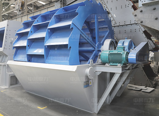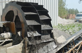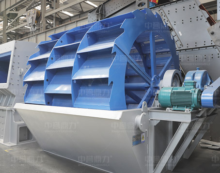 洗砂機(jī)工作時,電機(jī)通過三角帶、減速機(jī)、齒輪減速后帶動葉輪緩慢轉(zhuǎn)動,砂石由給料槽進(jìn)入洗槽中,在葉輪的帶動下翻滾,并互相研磨,除去覆蓋砂石表面的雜質(zhì),同時破壞包覆砂粒的水汽層,以利于脫水;同時加水,形成強(qiáng)大水流,及時將雜質(zhì)及比重小的異物帶走,并從溢出口洗槽排出,完成清洗作用。干凈的砂石由葉片帶走,后砂石從旋轉(zhuǎn)的葉輪倒入出料槽,完成砂石的清洗作用。