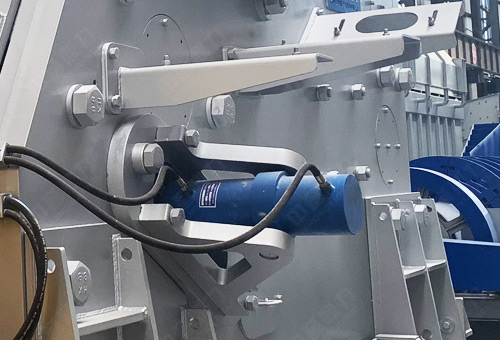 設(shè)備采用液壓雙楔塊調(diào)整裝置,可以快速調(diào)整出料口,調(diào)節(jié)出料粒度更加快速、簡(jiǎn)單、安