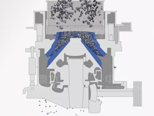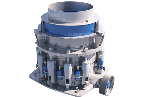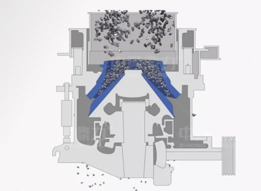 多缸液壓圓錐破碎機(jī)結(jié)構(gòu)簡單,由電機(jī)、傳動軸、齒輪、偏心套、定錐、動錐等部分組成,采用擠壓式的工作原理,電機(jī)通過三角帶、傳動軸、傘齒輪副帶動偏心套旋轉(zhuǎn),動錐在偏心套的帶動下做旋擺運(yùn)動。定錐和動錐時而靠近、時而偏離,360度對破碎腔內(nèi)的物料擠壓、搓攆破碎,破碎后的物料從下方排料口排出機(jī)腔。