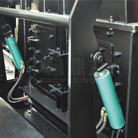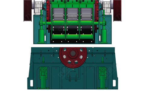 篦架通過液壓調(diào)節(jié),可根據(jù)所需要物料的大小和錘頭、篦板的磨損程度進行上下調(diào)整,省時省力,安。同時配備絲桿、螺母組合的輔助調(diào)節(jié)方式用來定位篦架,避免液壓缸受力,保障液壓缸使用壽命