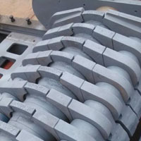 采用熱復(fù)合雙金屬高鉻合金錘頭,并且加長(zhǎng)錘頭合金,利用率更高,并且縮小錘頭與錘頭之間縫隙,避免錘頭側(cè)面磨損