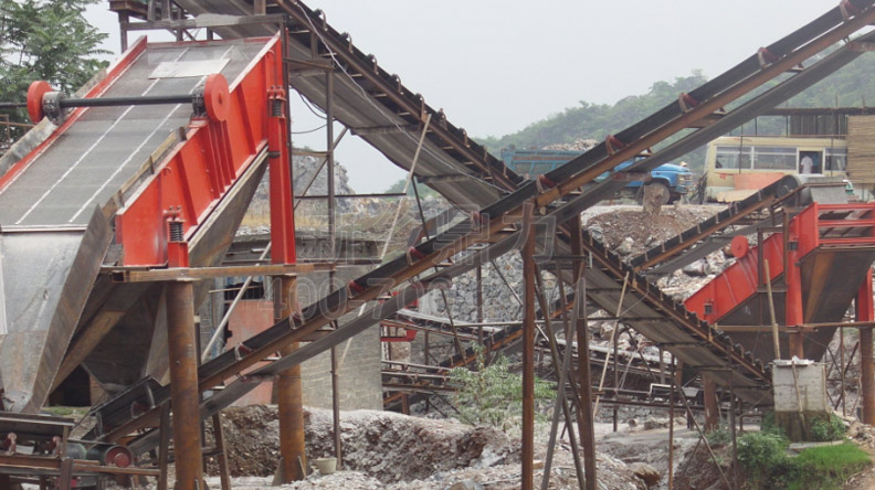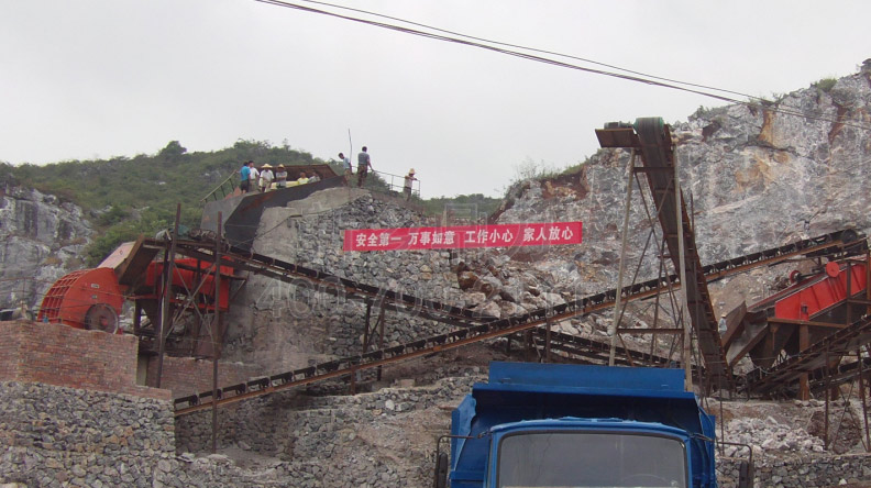此條時(shí)生產(chǎn)600噸石子生產(chǎn)線基本配置:PCZ1615重型錘式破碎機(jī)、PC1213錘式破碎機(jī)、ZG1538給料機(jī)、3YKZ2670×2振動(dòng)篩、2YKZ2670×2振動(dòng)篩。