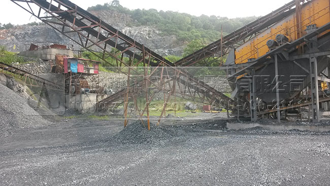 每小時250-300噸的石子生產(chǎn)線設(shè)備配置:PCZ1512重型錘式破碎機、ZGC1238振動給料機、2YK1860振動篩等等
