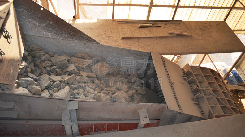在客戶的環(huán)保碎石廠生產(chǎn)線現(xiàn)場我們看到,直徑比較大的石頭正在經(jīng)過進(jìn)料口進(jìn)入到錘式破碎機(jī)內(nèi),針對粒徑比較大的石頭,我們公司大時產(chǎn)量的破碎機(jī)設(shè)備,可以容納大直徑為1.6米的石頭,不但不會出現(xiàn)物料堵塞的情況,而且還減少了維修設(shè)備的情況。