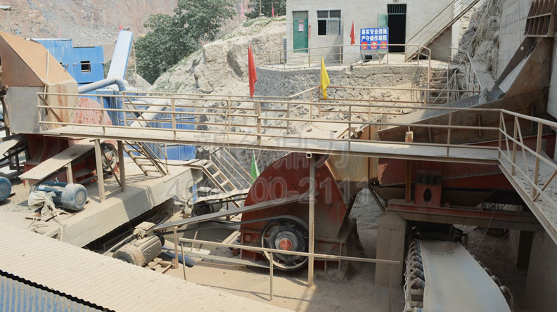 此條生產(chǎn)線配置的主要碎石設(shè)備是PCZ1512重型錘式破碎機(jī),每小時產(chǎn)量在500噸左右。重錘破可以克服傳統(tǒng)加工設(shè)備和工藝所生產(chǎn)的成品石料粒形不合格的問題。同時針對加工巖石設(shè)備磨損嚴(yán)重的問題,鼎力礦山設(shè)備公司采取了在破碎機(jī)轉(zhuǎn)子上加裝護(hù)圈等多種措施,大大提高設(shè)備的使用壽命。雖然是產(chǎn)量相對比較小的碎石廠,但是相比其他項目,也是盈利比較可觀的項目。