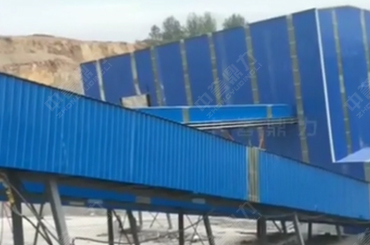 該項(xiàng)目環(huán)保措施做得很好,輸送帶采用封閉處理,輸送物料過程中沒粉塵潰散,還有四個大料倉用來儲存成品料。