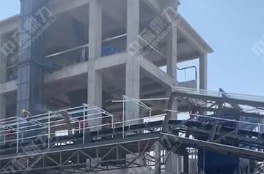 該砂石料生產線目前整體已建設完成,正處于吊裝料倉的階段。生產線上的破碎設備、篩分設備、除塵設備等均已安裝完畢。傳送帶高出的圍欄也正等待著封閉,同時還配置有袋式除塵器設備,更進一步減少生產時的揚塵,保障綠色環(huán)保生產。