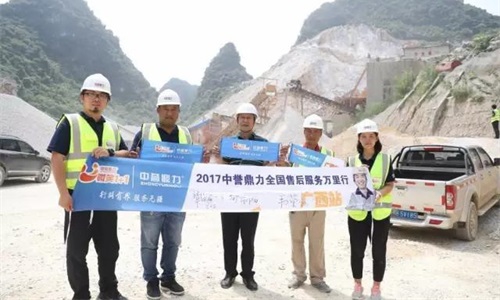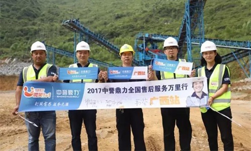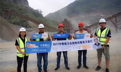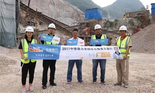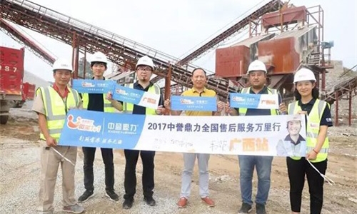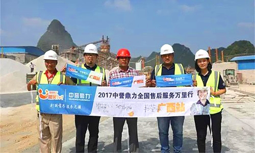 第一站桂林市獨(dú)石山采石場(chǎng)微笑1+1中譽(yù)鼎力2017售后服務(wù)萬(wàn)里行活動(dòng)湖南站已經(jīng)圓滿結(jié)束。離開(kāi)了湘楚湖南,售后萬(wàn)里行團(tuán)隊(duì)又趕赴美麗廣西。于9月12日,中譽(yù)鼎力廣西售后服務(wù)萬(wàn)里行從獨(dú)石山采石場(chǎng)正式起航! 此次售后萬(wàn)里行,團(tuán)隊(duì)成員將深入廣西區(qū)域砂石骨料生產(chǎn)線現(xiàn)場(chǎng),為我公司客戶提供