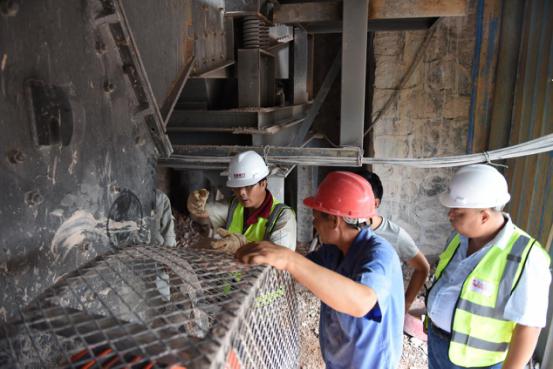 現(xiàn)場(chǎng),鼎力安裝工程師、銷(xiāo)售經(jīng)理、售后服務(wù)經(jīng)理了解到該生產(chǎn)線的產(chǎn)量沒(méi)有達(dá)到設(shè)備時(shí)產(chǎn)量時(shí),立即開(kāi)始檢測(cè)設(shè)備、查找原因。經(jīng)過(guò)查看用戶(hù)的破碎原材料,發(fā)現(xiàn)原材料里含有硅巖,加劇了破碎機(jī)錘頭磨損程度,進(jìn)而影響產(chǎn)量。建議在破碎前將硅巖層剝離掉,避免錘頭磨損嚴(yán)重的情況再次出現(xiàn)。