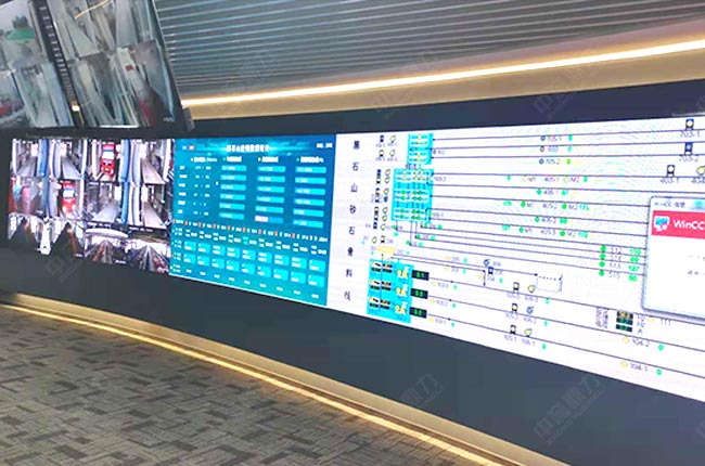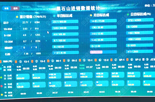 河南固始縣新旭礦業(yè)時(shí)產(chǎn)3000噸骨料生產(chǎn)線礦山生產(chǎn)管理系統(tǒng)顯示大屏